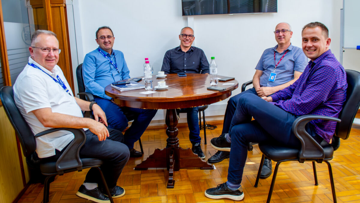 Legendas: O Presidente do Conselho de Administração da BR.Digital, José Paulo Linné e o Executivo de Negócios Corporativos, Laércio Hoff foram recepcionados pelos gestores da Dália: o Supervisor de TI, Rodrigo Werner, o Controller, Fernando Luiz Pagliari e o Vice-Presidente Executivo, Igor Estevan Weingartner