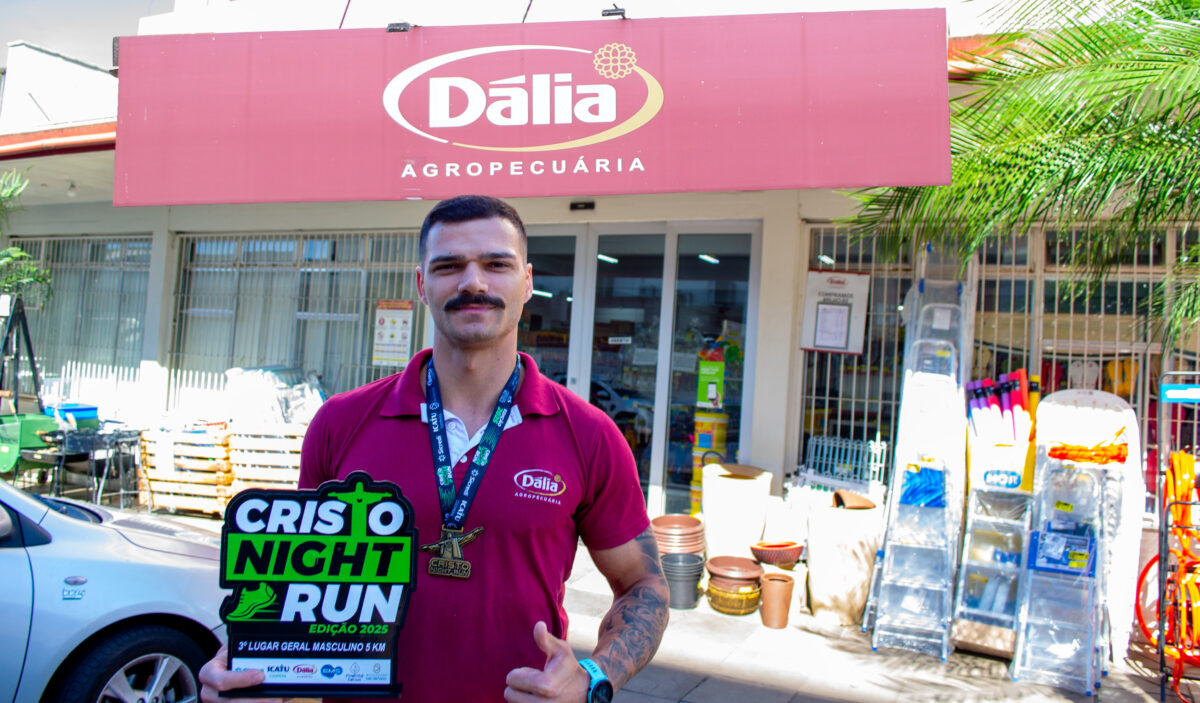 Durante a corrida, um dos destaques foi Jackson Mathias de Souza (30), colaborador da Dália Agropecuária de Encantado, que conquistou o terceiro lugar na classificação geral da prova de 5 km. “Fiquei muito feliz por conseguir o pódio e levar o troféu de terceiro lugar no geral”, comemora Jackson.