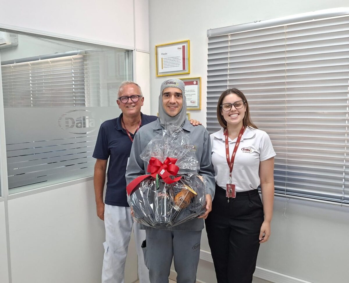 A frase escolhida foi “Semeando disciplina, colhendo qualidade”, de autoria de Adroaldo da Silva, do Setor de Manutenção da Divisão Frango de Corte. Como premiação, ele recebeu um kit especial da Dália Alimentos, composto por cuia, tábua de corte, garrafa e bolsa térmica.