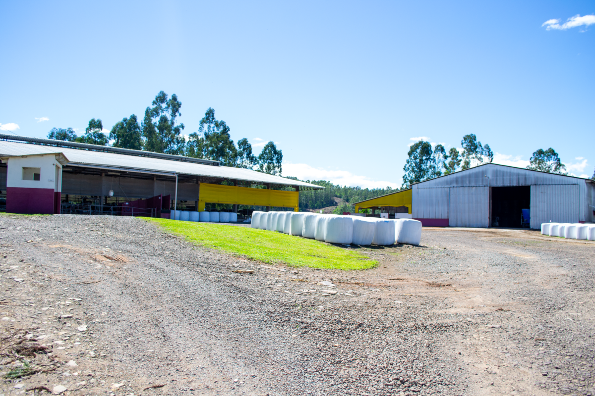 Somente em Nova Bréscia são 12 hectares de extensão e, atualmente, há 180 animais em lactação. “Além dos animais lactantes e considerando novilhas e vacas pré-parto e secas temos um plantel total de 225.”