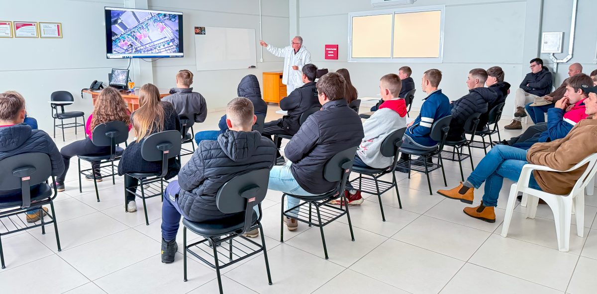Pela manhã, os jovens das regiões do Vale do Rio Pardo e Centro Serra foram recepcionados pelo Presidente do Conselho de Administração, Gilberto Antônio Piccinini, no auditório Amélio Berté, na matriz em Encantado. “É sempre uma alegria receber os jovens, filhos dos associados, que desde cedo acompanham a família na produção de suínos e leite. Além disso, a ocasião é oportuna para proporcionar mais aproximação, diálogo e, ainda, por permitir que conheçam como funcionam as operações após a produção sair de suas propriedades”, destacou Piccinini.