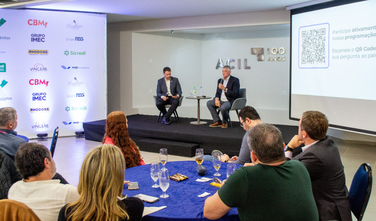 Por fim, o Presidente da ACIL, Joni Zagonel, em sua saudação, destacou a importância de trazer para o evento o case da Cooperativa Dália Alimentos. Ele destacou que 40% do PIB gaúcho é proveniente da agropecuária. “O agronegócio e a indústria alimentícia estão profundamente conectados em nossa região. A Dália, que representa mais de duas mil famílias associadas, é uma gigante do setor agropecuário e tem papel crucial no desenvolvimento regional. É essencial garantir a preservação e cuidado com a cooperativa para que ela continua prosperando no Vale do Taquari”, frisou. Ao final do evento, Zagonel conduziu as perguntas do público ao palestrante.