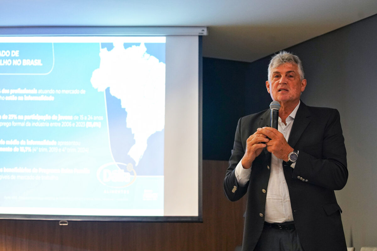 Legenda: durante o seminário “Crescimento Sustentável e a Reinvenção do Trabalho”, o Presidente da Dália e também Diretor da Federação das Indústrias e do Centro das Indústrias do Estado do Rio Grande do Sul (Fiergs/Ciergs) e da Federação de Entidades Empresariais do Rio Grande do Sul (Federasul), abordou a escassez de mão de obra no mercado de trabalho,