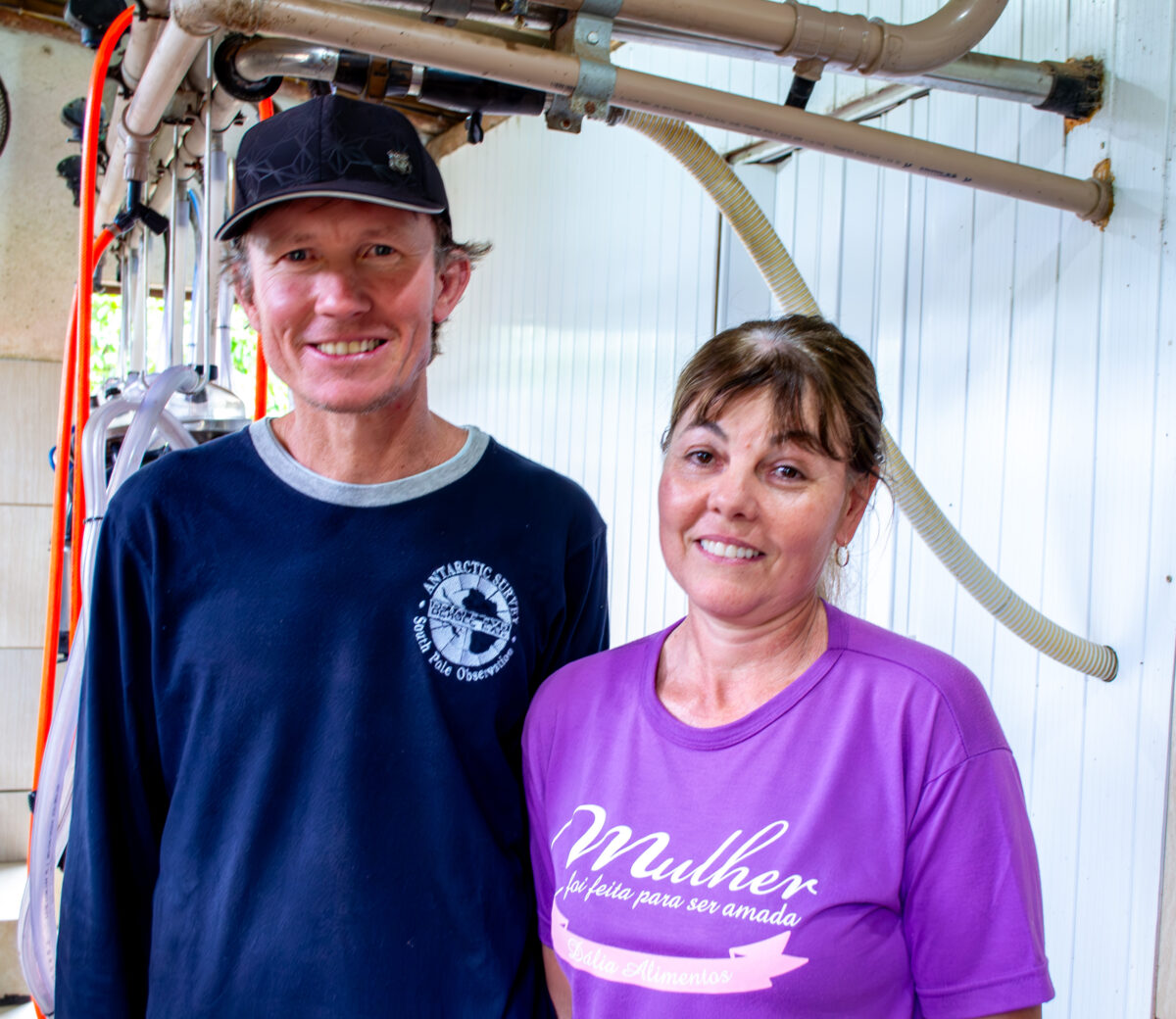 As tímidas palavras, em meio às diversas tarefas na propriedade, não escondem a alegria do casal Sadi Eduardo Bender (45) e Nilva Simonetti (52) em exercer a vocação de cuidar do rebanho leiteiro. Todos os dias, a rotina em Picada Felipe Essig, no município de Travesseiro, começa às 5h, com a preparação para a primeira ordenha do dia.